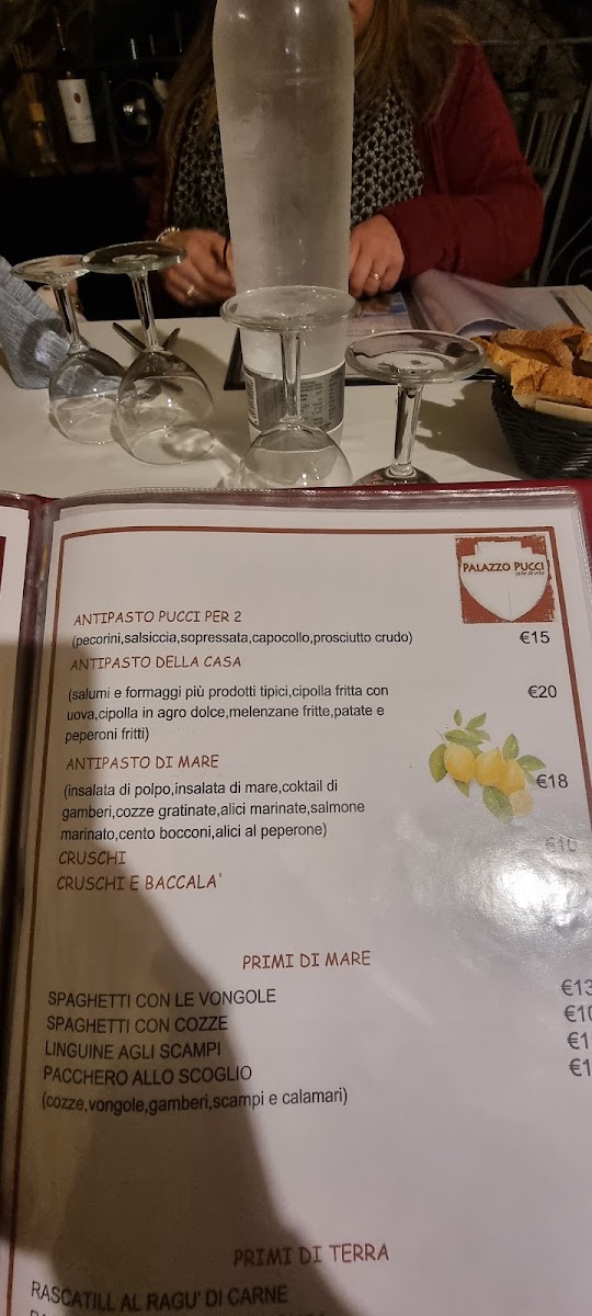 The menu at Palazzo Pucci reads like a compact celebration of southern Italian comfort, balancing tradition with crowd-pleasing variety. It begins confidently with sharable starters such as Tagliere Di Salumi E Formaggi, a classic board that sets the tone with cured meats and cheeses, and Frittura Mista, which delivers crisp, well-seasoned bites ideal for easing into the meal. Pasta dishes anchor the menu with regional character: Orecchiette Al Sugo offers reassuring simplicity, while seafood lovers are well served by Linguine Alle Cozze and Gnocchi Alle Vongole, both highlighting the freshness and salinity of the sea without overcomplication. From the grill, Salsicce Alla Brace brings smoky, rustic depth, contrasted nicely by the lighter yet flavorful Seppia Grigliata, which emphasizes clean grilling and natural sweetness. Pizza choices reinforce the restaurant’s approachable appeal, from the timeless Pizza Margherita to the more distinctive Pizza Bresaola and Piazza Bresaola E Rucola Con Scaglie Di Limone, where cured beef, peppery greens, and citrus notes create a fresher, more modern profile. Side elements like Peperoni Cruschi add texture and regional flair, acting as a crunchy accent rather than a distraction. Desserts maintain a citrus-forward identity with Lemon Cheesecake and Lemon Pie, both light enough to close the meal without excess heaviness, while Grappa & Cioccolato Fondente offers a bolder, adult finish that pairs intensity with warmth. Taken together, the menu feels cohesive and thoughtfully structured, offering diners a clear snapshot of Italian flavors that move smoothly from comforting classics to brighter, more refined notes.